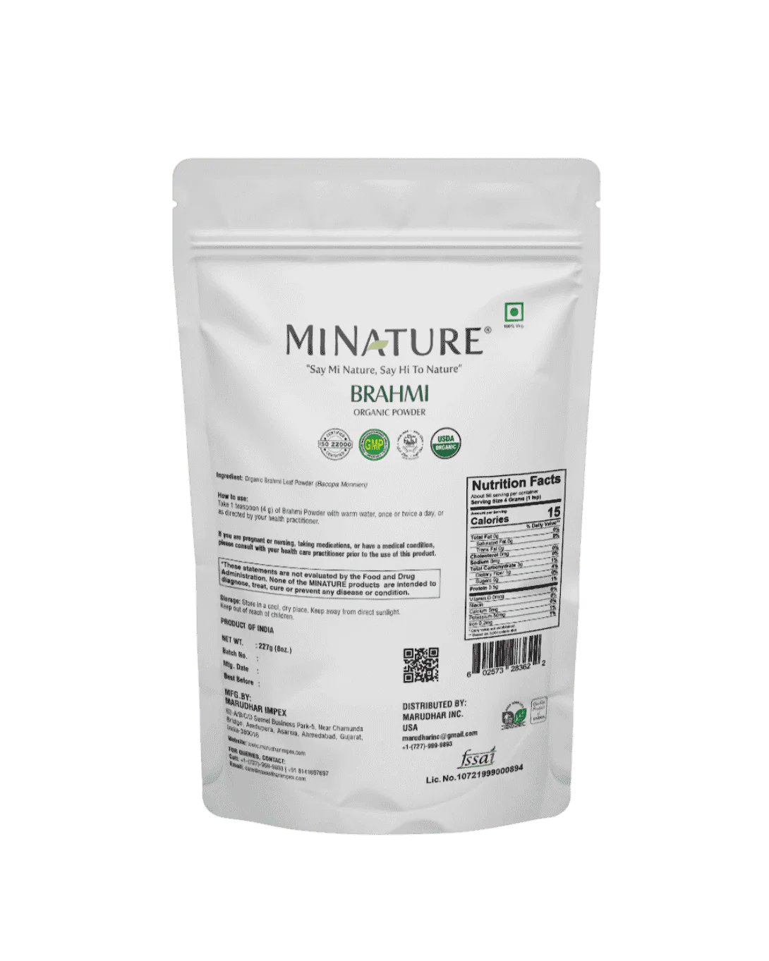 Organic Brahmi Powder 227 g - USDA Certified (Bacopa Monnieri)