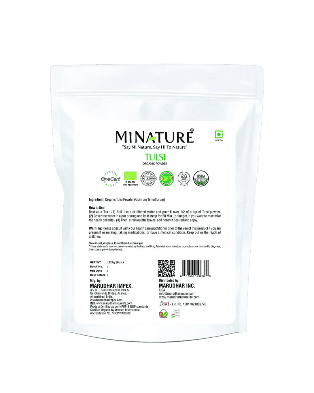 Organic Holy Basil Powder 227g - USDA Certified (Tulsi)—