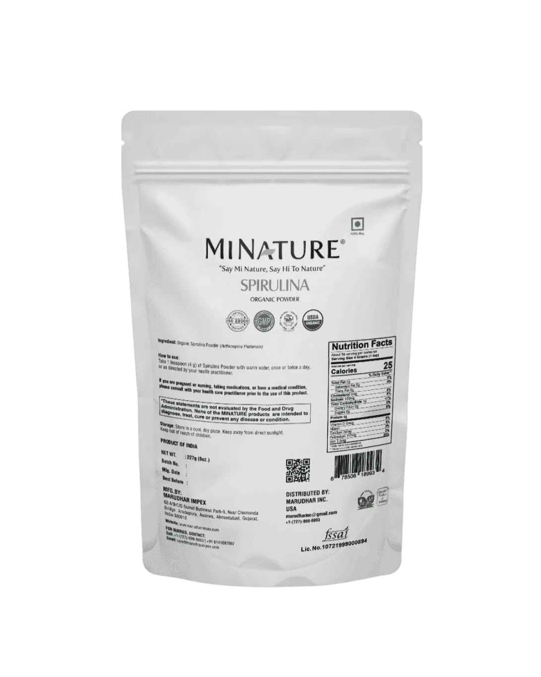 Organic Spirulina Powder 227g - USDA Certified