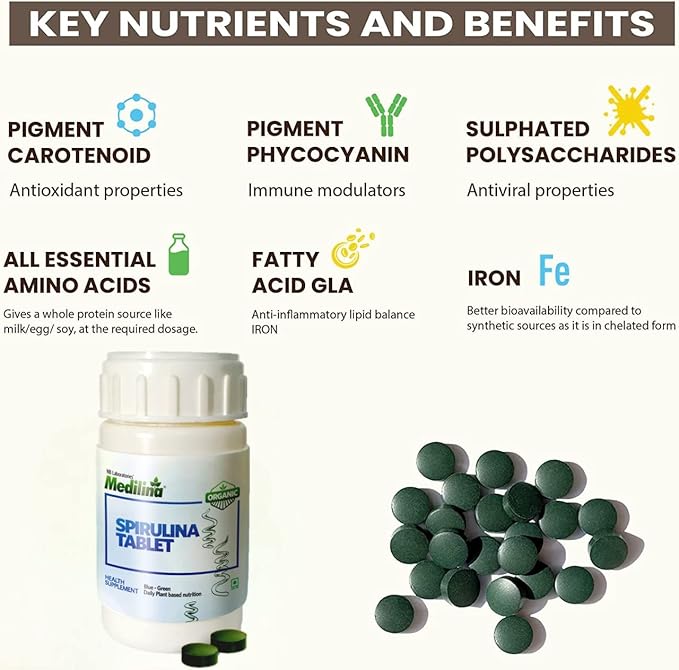 Pack: 120 Tablets | 500mg per tablet (Spray dried spirulina)