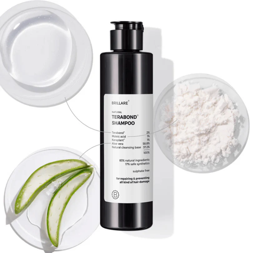 Brillare Terabond Shampoo goes beyond cleansing—it repairs hair at the core with advanced bond-building science. Powered by Maleic Acid, it penetrates deep into the hair fiber to rebuild broken bonds, restoring resilience and elasticity. The Ceramide Complex locks in moisture and protects against damage from heat, styling, and pollution. Meanwhile, KeraPlant Amino Acids, a plant-based protein blend, strengthen and smooth hair without weighing it down.